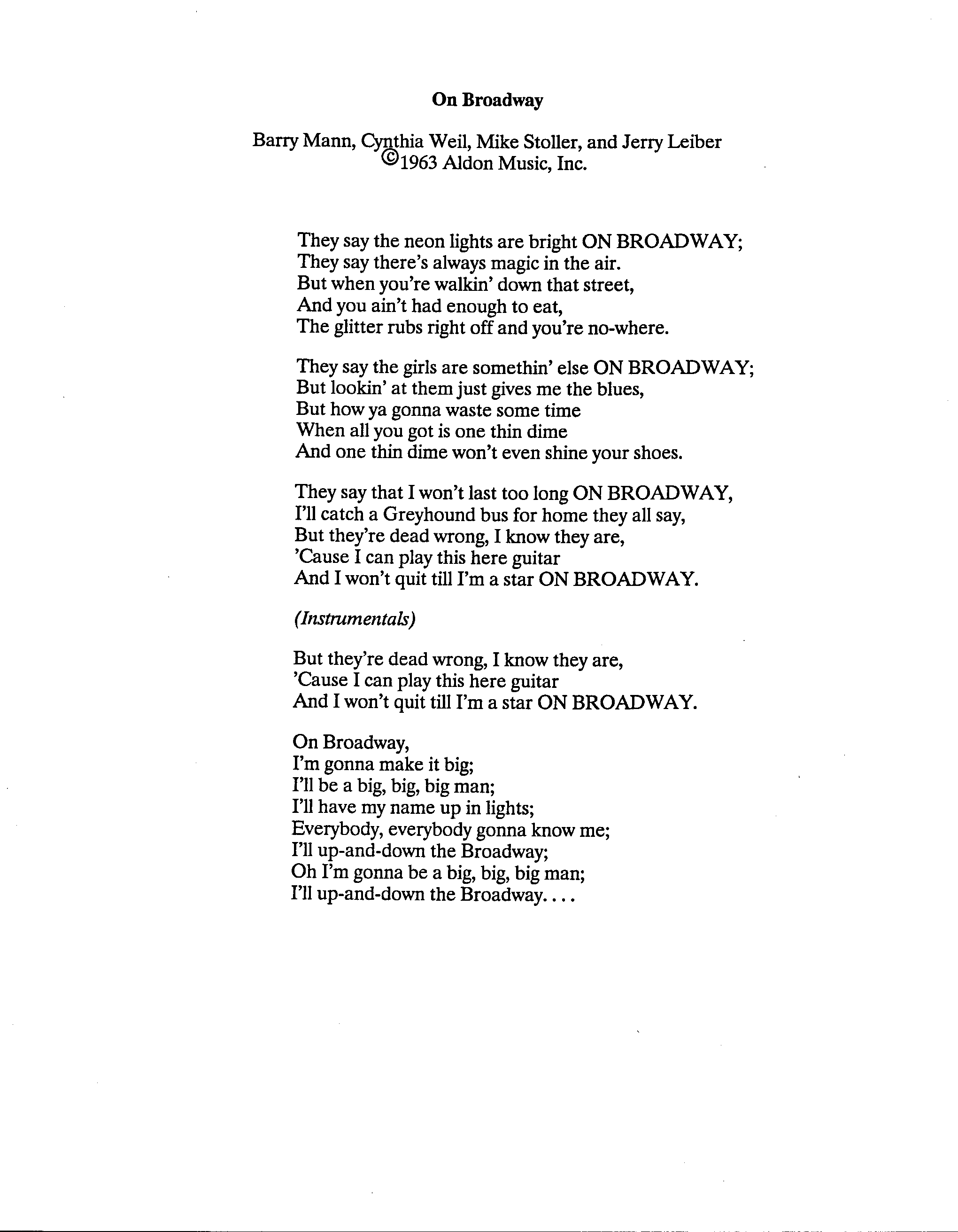 On Broadway was written by Barry Mann and Cynthia Weil in collaboration with the team of Jerry Leiber and Mike Stoller.