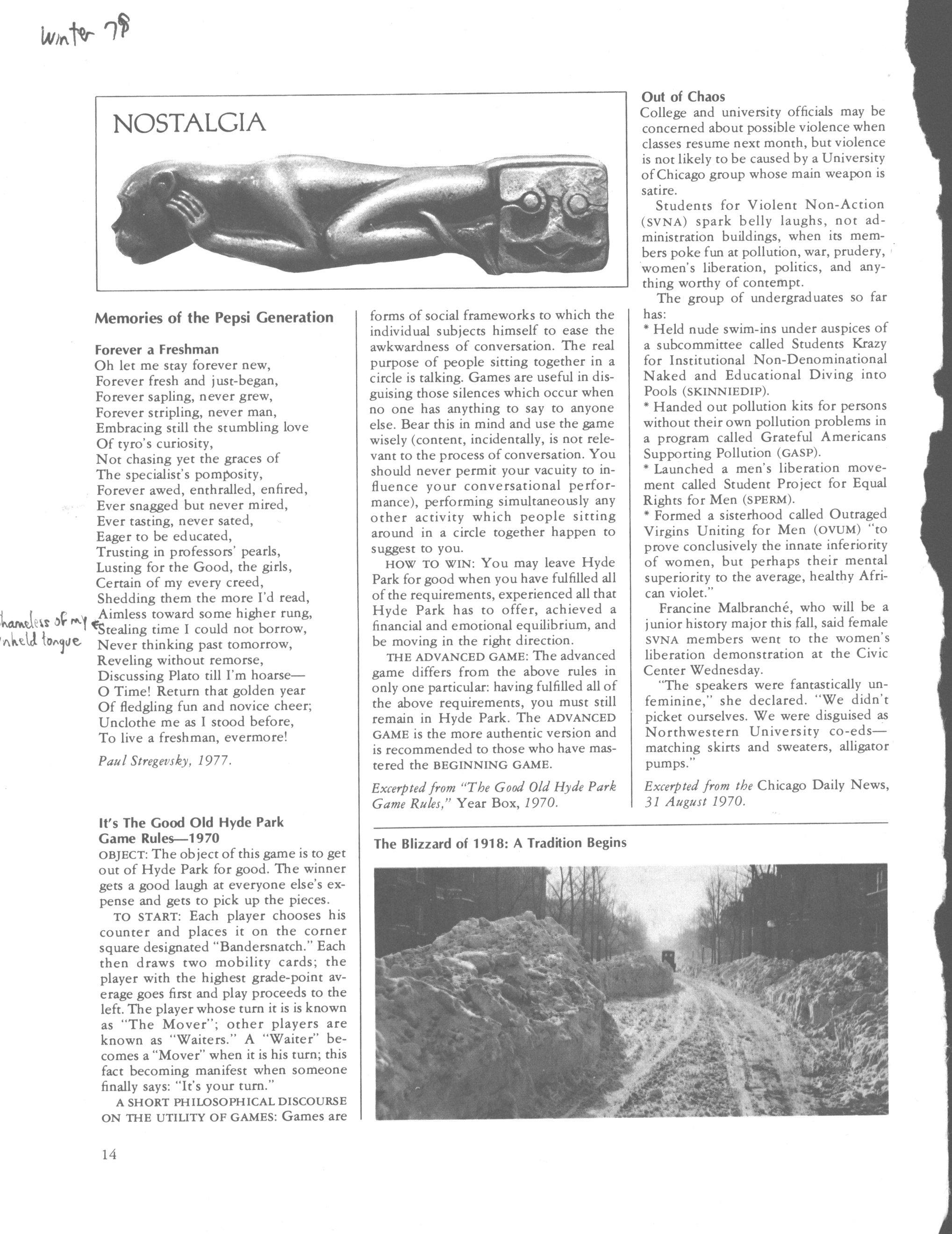 “Forever a Freshman” published (with one missing line) in the University of Chicago Alumni Magazine.