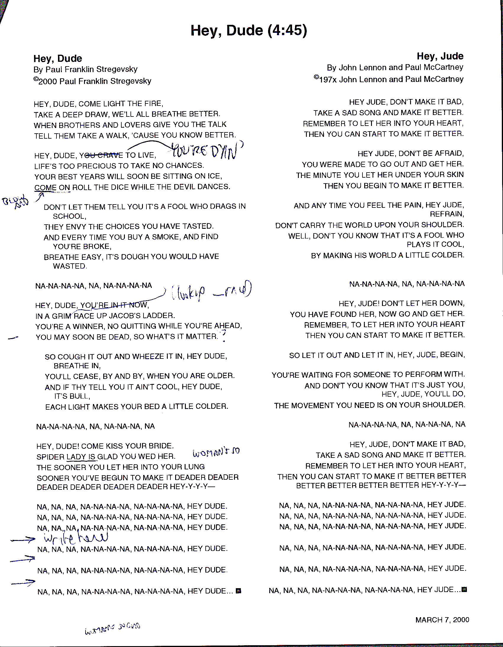 I hoped this song would discourage teens from smoking. But I never produced it, submitted it, or secured copyright permission. I’m not sure I even finished writing it; the only copy I could find included my ball-point markup. Reading the lyrics in 2025, I found my writing contrived.