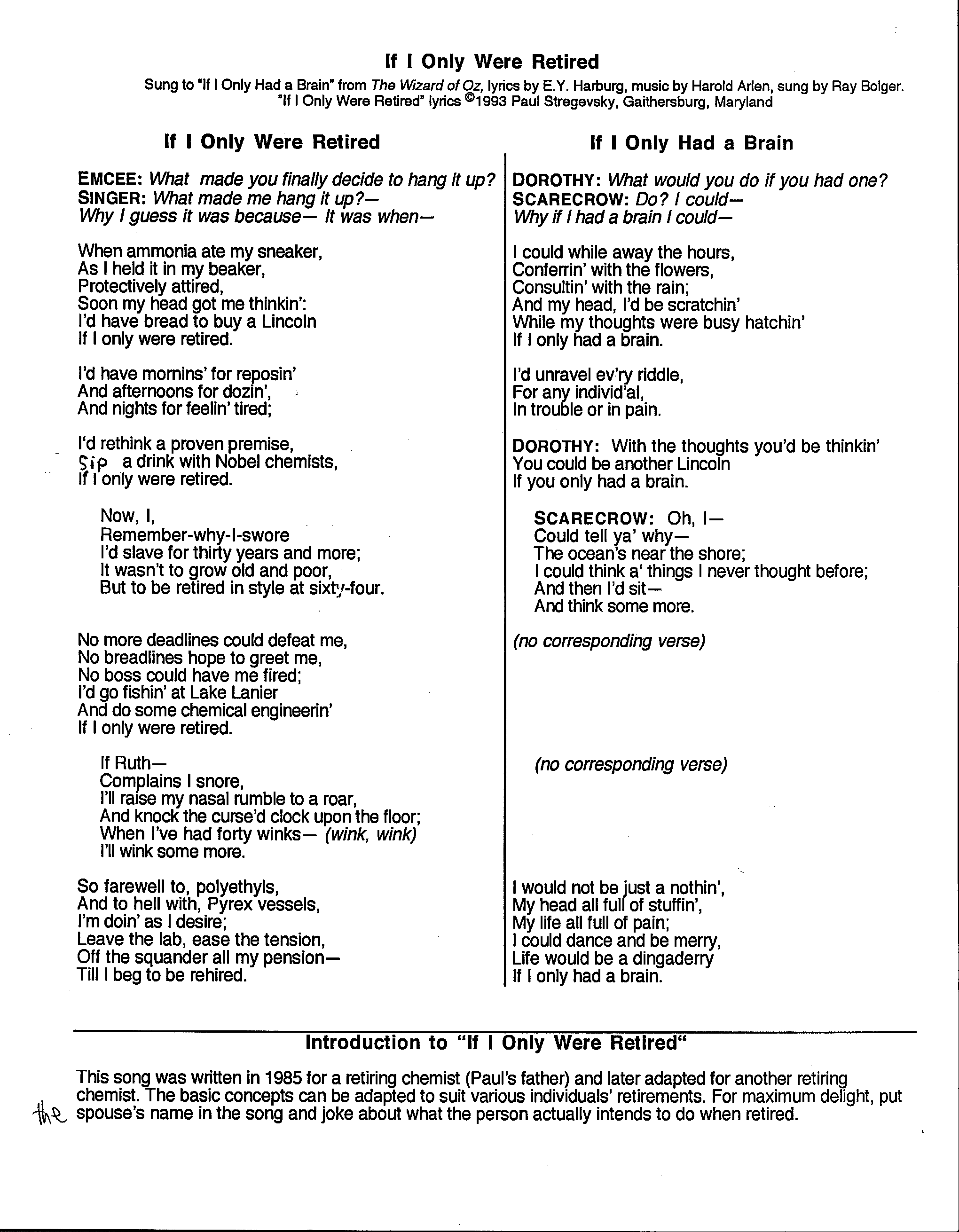 Sung to “If I Only Had a Brain” from The Wizard of Oz