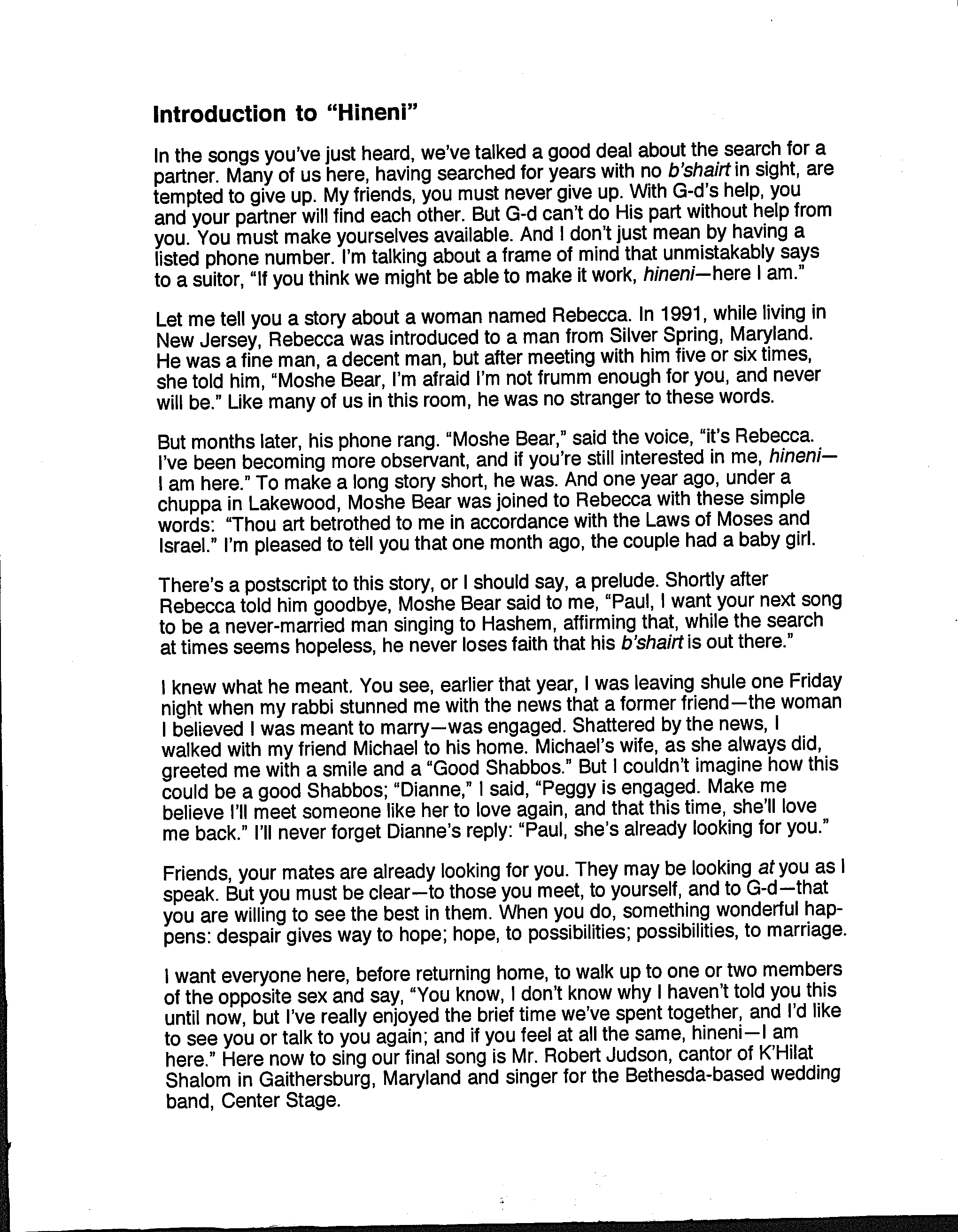 Here’s how I introduced the song when singing it at Jewish singles events.